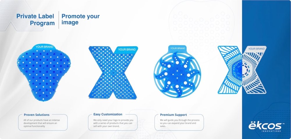 As the official distributor of Ekcos products in the EU, we offer you the unique opportunity to personalize our hygienic products with your brand identity – whether through classic printing or an exclusive logo cut-out directly into the product surface.